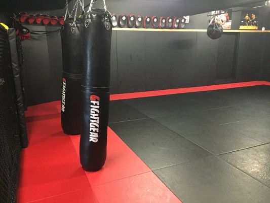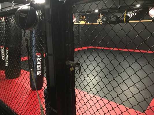The Gym also has a 7.5 Meter square Matted area and octagon cage wall for sparring sessions within training / Team Training, Padded and Cage Walls all around the Gym.